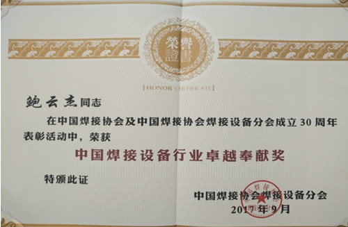 鮑云杰榮獲“中國焊接設備行業(yè)卓越奉獻獎”榮譽(yù)