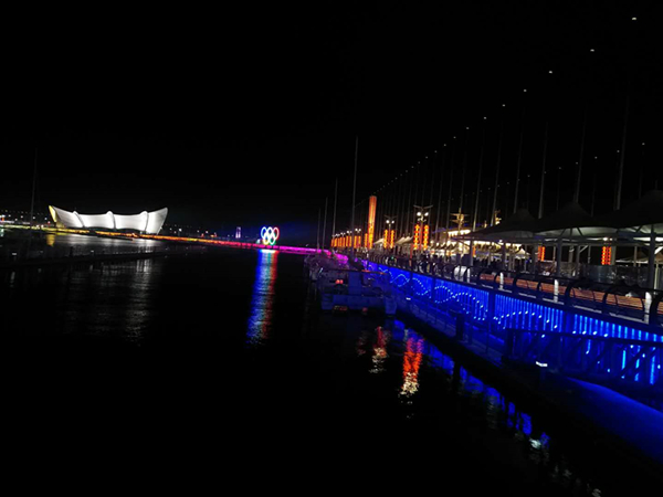 初秋的青島五四廣場(chǎng),風(fēng)景秀麗,氣候宜人,流光溢彩的燈光與蜿蜒曲折的海岸線(xiàn)相交呼應,讓游人在光影互動(dòng)中感受青島的浪漫。