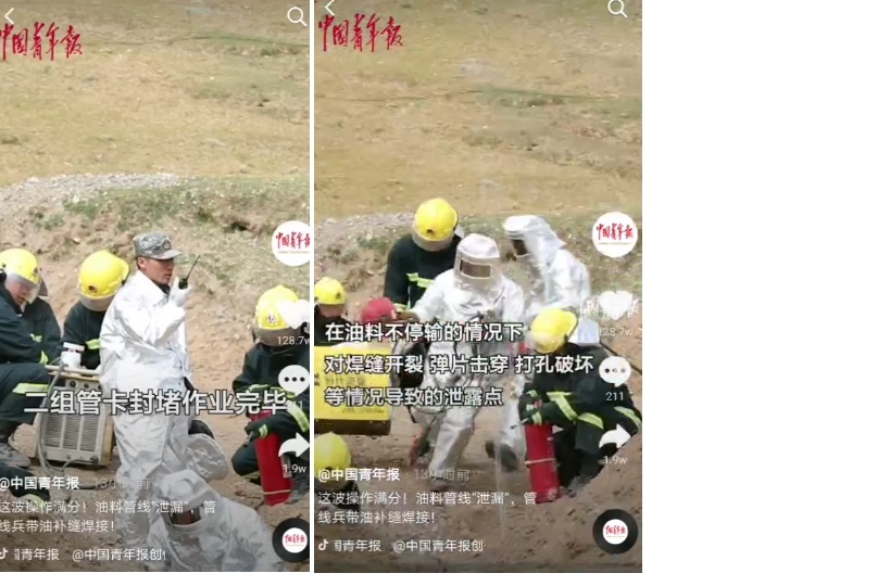 據《中國青年報》報道,9月19日西藏軍區青藏兵站某管線(xiàn)大隊組織實(shí)戰化輸油管線(xiàn)鋪設搶修演練。在油料不停輸情況下對焊縫開(kāi)裂,單片穿孔,打孔破壞等情況導致的泄露點(diǎn),官兵們采用補片焊接,管卡封堵,帶油焊接的方式對管線(xiàn)漏點(diǎn)組織搶修。 演練使用的時(shí)代焊機非常搶鏡,焊接設備也能守護邊防,我驕傲,我自豪?。?!