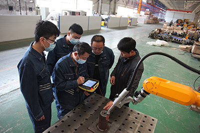 時(shí)代高級技師現場(chǎng)輔導 機器人焊接演練